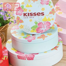 尚唯优品花颜·巧语系列好时kisses圆形蓝粉红色磨砂铁盒喜糖礼盒