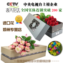 郑州鲜花同城速递厄瓜多尔七彩进口玫瑰礼盒预定生日送花袭人花店