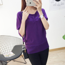 魅迪芬2017春季新款韩版女蝙蝠衫针织衫中袖气质性感百搭毛衣套头