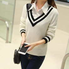 魅迪芬春季新款2017英伦风女式毛衣V领套头针织衫长袖新品学生