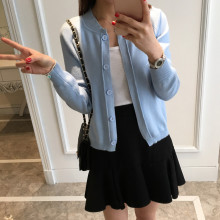 2017 春季新品韩版复古空调衫女装针织衫短针织开衫女薄外套