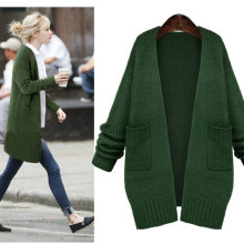 欧洲站2017秋冬季新款女装中长款宽松口袋大码针织开衫毛衣外套厚