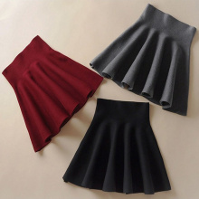 魅迪芬韩版春秋半身裙 百褶裙女蓬蓬裙伞裙针织 高腰打底短裙 女