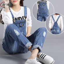 破洞背带裤女 九分牛仔裤修身显瘦连体裤破洞背带裤女小脚铅笔裤