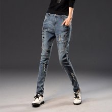 2016秋季新款牛仔裤女修身显瘦个性图案小脚铅笔长裤女垮裤