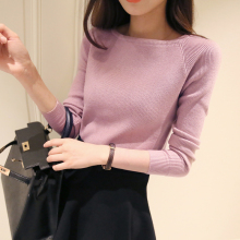 春秋新款一字领针织衫韩版女装修身打底衫长袖短款紧身毛衣女套头