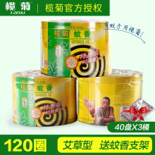 榄菊蚊香40盘X3桶 艾草蚊香盘 家用驱蚊香 送蚊香架