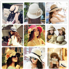 春夏大檐女帽沙滩帽凉帽草帽旅游帽遮阳帽防紫外线波浪边大沿花朵