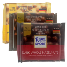 ritter sport德国进口运动巧克力瑞特斯波德全榛子牛奶白黑巧克力