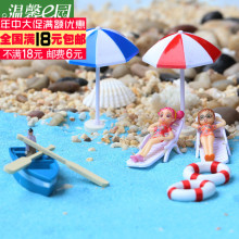 多肉苔藓微景观摆件饰品 美女小船船瞄沙滩伞蓝沙沙滩椅造景摆件