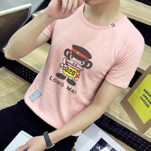 日系男装潮男士个性竹节棉透气休闲短袖T恤韩版修身圆领T恤夏装