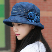帽子女棉麻春秋天韩版流行双花防紫外线遮阳帽中老年渔夫帽盆帽