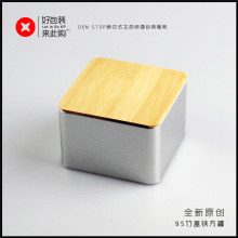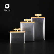 50-80g茶叶容量 竹板竹盖铁盒 小号正方形茶叶铁罐 茶叶包装内罐