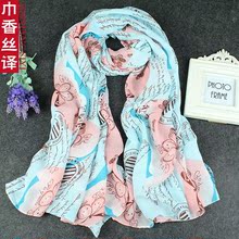 丝巾超长款春秋雪纺围巾女冬季韩国版纱巾披肩花色清新款雪香漫天