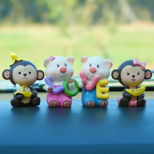 情侣love猪可爱汽车摆件车内饰品小猴子内饰装饰品创意卡通车饰萌