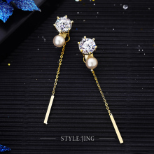 静风格璀璨之冠韩国耳环女人工锆石925银针耳坠优雅流苏珍珠耳饰