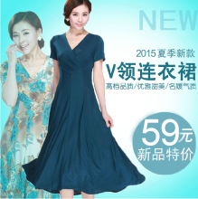 17新款长款夏季中老年女连衣裙大码修身妈妈装V领显瘦大摆型长裙