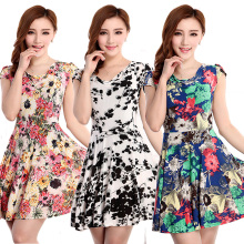 2016新款大码女装短袖女连衣裙夏季韩版修身碎花沙滩超大裙摆跳舞
