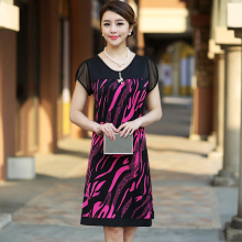 2017夏季新款女装中老年中长透气连衣裙妈妈装碎花大码沙滩裙子女