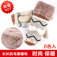 韩版女士手套保暖 全指手套冬加厚女 棉手套女冬可爱加厚挂脖加绒