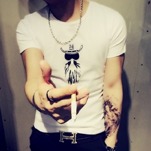 男士短袖t恤圆领纯白色体恤刺绣紧身夏季打底衫半袖半截袖衣服潮