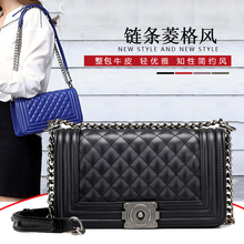 Inme2017春夏季新款潮女包真皮牛皮单肩斜挎包菱格链条包小方包包