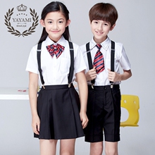英伦风校服夏季短袖衬衫套装背带长裤校服学校班服儿童集体演出服