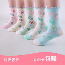春夏薄款儿童宝宝袜子无骨纯棉透气男女学生全棉网眼中筒松口短袜