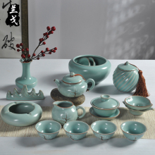 兰戈 汝窑陶瓷茶具套装 整套手绘汝瓷开片功夫茶壶茶杯茶叶罐茶海