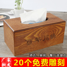 木质纸巾盒定制 酒店咖啡餐厅纸巾盒创意客厅实木抽纸盒定做LOGO