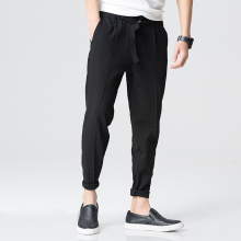 夏季男士休闲裤亚麻九分裤男宽松裤子男束脚裤男棉麻小脚哈伦裤男