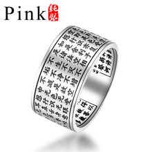 PINK 999足银戒指心经戒指复古泰银霸气男士戒指足银宽版指环