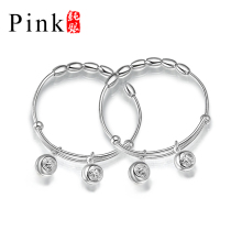 PINK 999足银婴儿宝宝银手镯百福可调节镯子满月宝宝礼物保平安