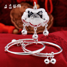 正直银饰 宝宝银手镯鸡年长命锁999纯银套装婴儿小孩银锁银镯子男
