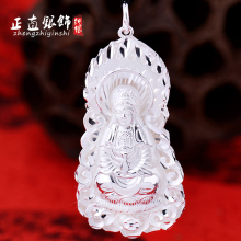 正直银饰 999足银观音吊坠男士项链挂坠纯银观音菩萨送证书保平安