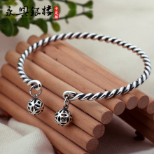 银手链S990女宫铃吊坠圆珠银手链转运珠佛珠足银饰品铃铛手链