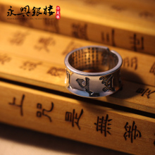 【天天特价】999足银梵文六字真言心经开口戒指复古男女指环尾戒