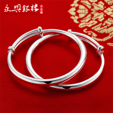 银手镯999足银镯子光面推拉圆镯吊坠实心女手工定制银首饰品