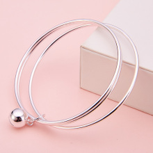 顺钦银楼 S990足银手镯一心一意转运珠开口银镯子送女友银饰品