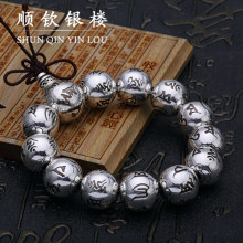 顺钦银楼 S999足银佛珠手串男六字箴言复古圆珠手链 银饰品手串