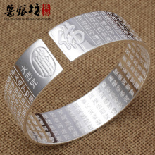 【鲁银坊】S999足银纯银宽版手镯 大悲咒佛经开口银手镯 心经银饰