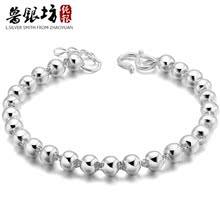 【鲁银坊】S990足银 纯银佛珠手链 圆珠转运珠手链情侣银手链