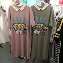 韩国原宿风bf夏季新款宽松显瘦卡通印花中长款POLO衫T恤女连衣裙
