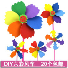 DIY六彩风车 儿童幼儿园手工课制作EVA美劳材料包 户外活动玩具