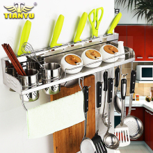 304不锈钢多用厨房置物架刀架调味架带可移动挂钩毛巾杆