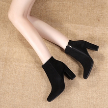 2016年秋冬季新款磨砂方头粗跟短靴高跟女靴子短筒及裸靴中筒靴