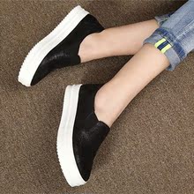 2017年春季新款防水台厚底单鞋子高跟女鞋粗跟乐福休闲鞋深口低帮