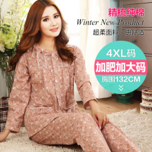 冬季珊瑚绒睡衣女加肥加大中年加厚加绒夹棉袄法兰绒冬家居服套装