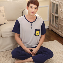 男士睡衣夏季纯棉质短袖长裤睡衣套装休闲全棉质特加肥加大码