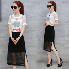 网纱打底t恤中长款短袖连衣裙女两件套夏季韩版时尚套装修身显瘦